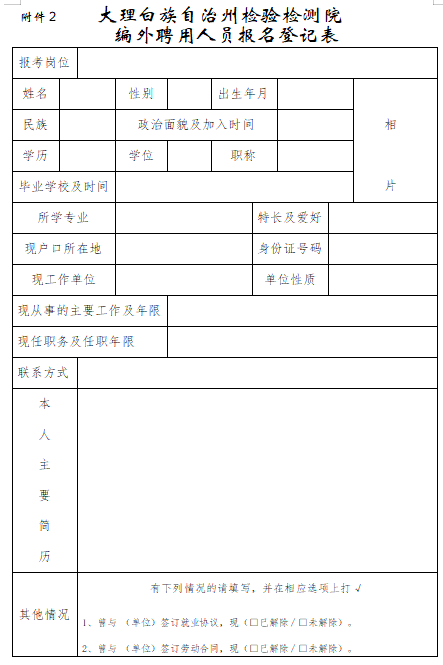 2.大理白族自治州檢驗檢測院編外聘用人員報名登記表