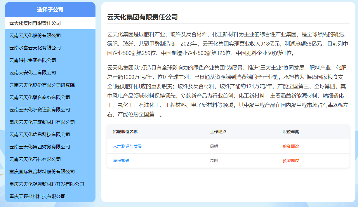 云天化集團是以肥料產(chǎn)業(yè)、玻纖及復合材料、化工新材料為主業(yè)的綜合性產(chǎn)業(yè)集團,是全球領先的磷肥、氮肥、玻纖、共聚甲醛制造商。近年來,集團年營業(yè)收入平均近900億元、年利潤總額超55億元,資產(chǎn)總額超1000億元。集團連續(xù)多年上榜中國企業(yè)500強榜單,位列中國制造業(yè)企業(yè)500強第159位。2024年,集團實現(xiàn)營收774.1億元,利潤總額61.6億元,保持穩(wěn)定向好的發(fā)展勢頭,跑贏市場和同行。