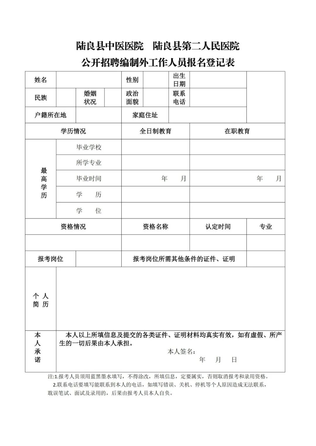 2.陸良縣中醫(yī)醫(yī)院 陸良縣第二人民醫(yī)院公開招聘編外工作人員報名表。