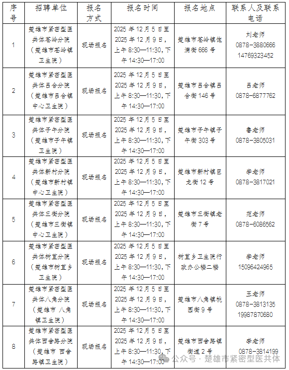 在楚雄市緊密型醫(yī)共體公眾號及各招聘單位微信公眾號、公示欄等平臺上發(fā)布。