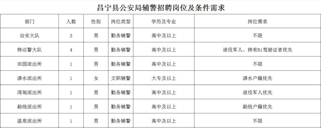 昌寧縣公安局關(guān)于面向社會(huì)公開(kāi)招聘警務(wù)輔助人員的公告