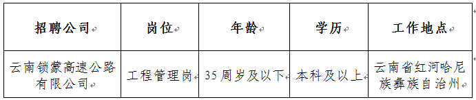 (八)山東高速云南發(fā)展有限公司有權(quán)根據(jù)崗位需求變化及報(bào)名情況等因素,調(diào)整、取消或終止個(gè)別崗位的招聘工作,并對(duì)本次招聘有最終解釋。