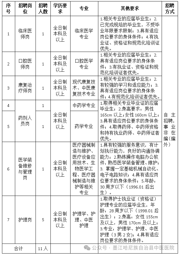 墨江縣中醫(yī)醫(yī)院關(guān)于2026年招聘編外人員公告