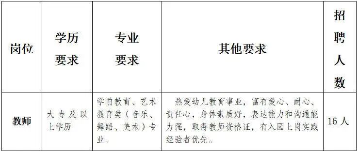 4.具備良好的品行和職業(yè)道德,吃苦耐勞,關(guān)心愛(ài)護(hù)幼兒,責(zé)任心強(qiáng)。5.具備崗位所需的專(zhuān)業(yè)或者技能條件。6.適應(yīng)崗位要求的身體條件。儀表端莊、身體健康,無(wú)傳染性疾病和精神病史。