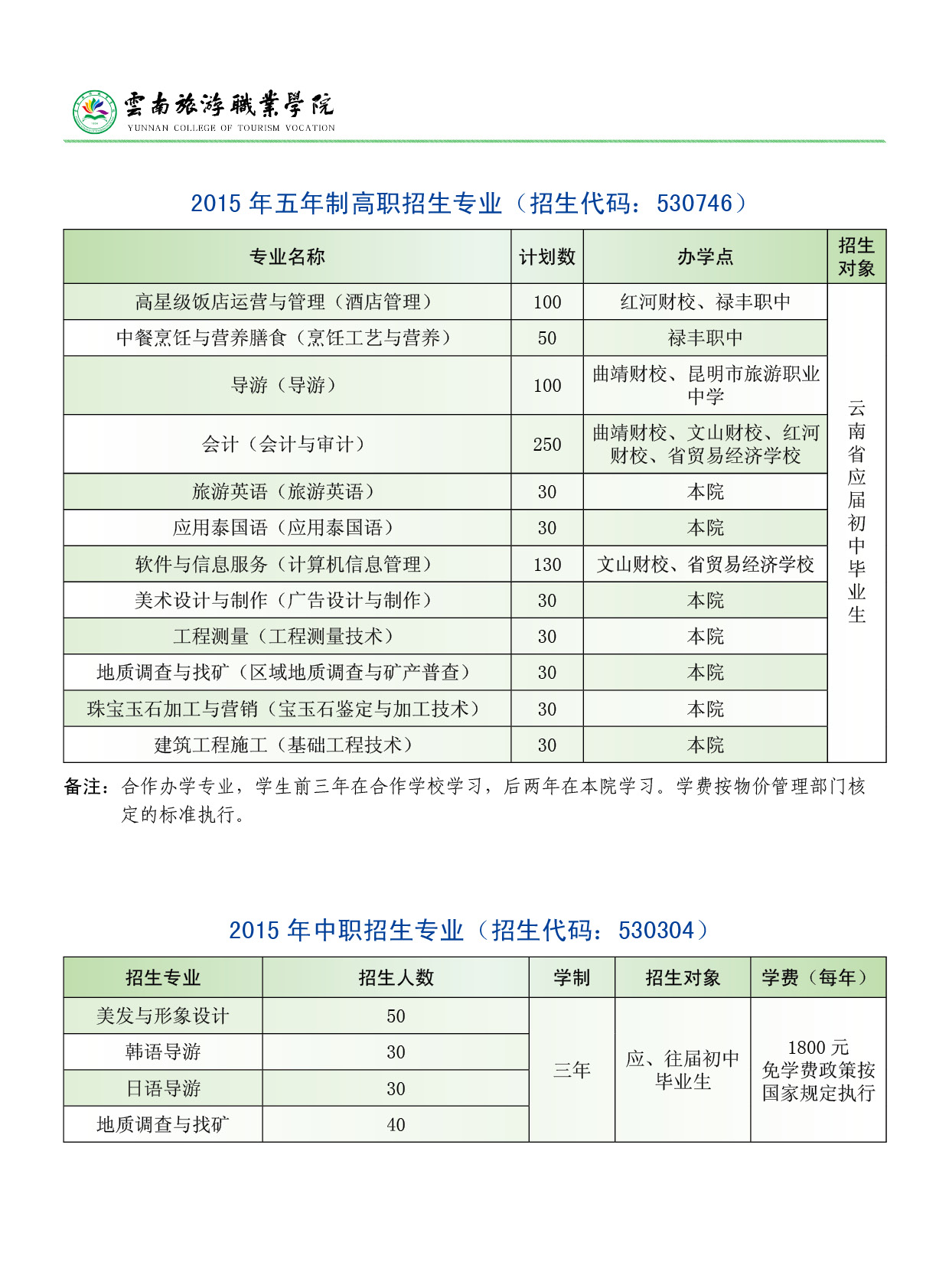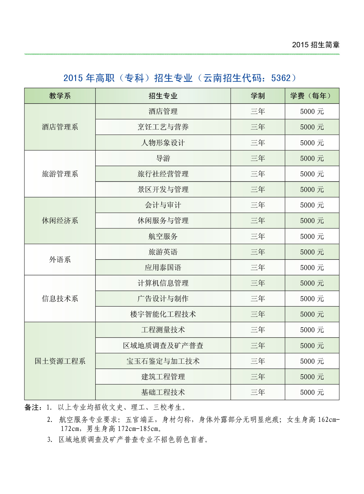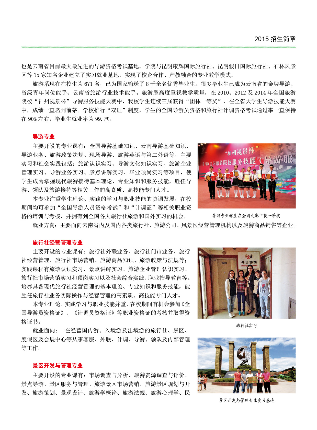 云南旅游職業(yè)學(xué)院2015年招生簡章