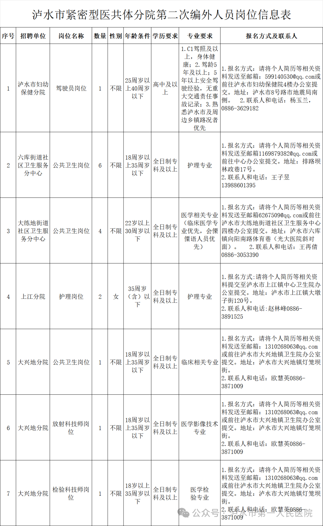 附件:1.瀘水市緊密型醫(yī)共體分院第二次編外人員崗位信息表