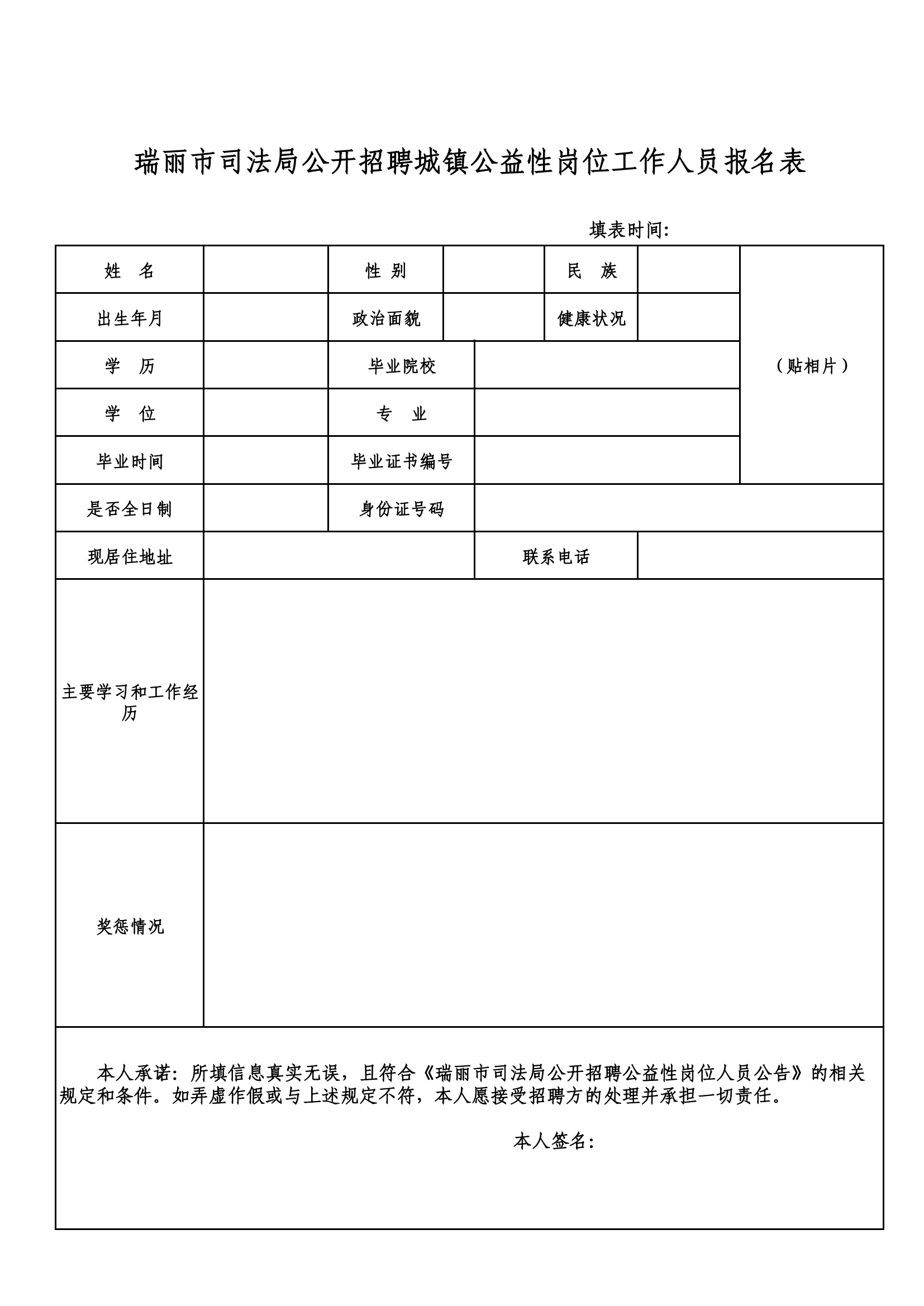 附件:瑞麗市司法局公開招聘城鎮(zhèn)公益性崗位工作人員報名表。