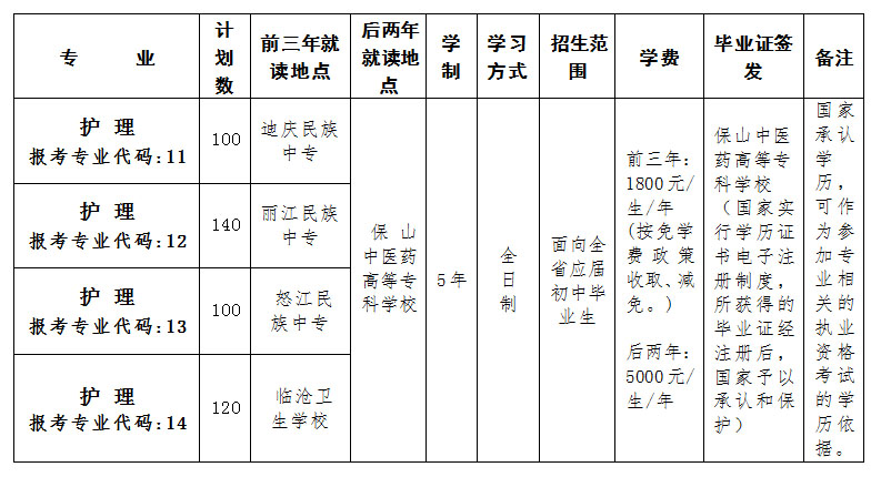 2023年保山中醫(yī)藥高等??茖W(xué)校三年制
