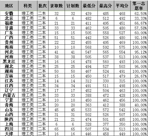 西南林業(yè)大學(xué)2014年全國(guó)各省份理工類文史類錄取情況表