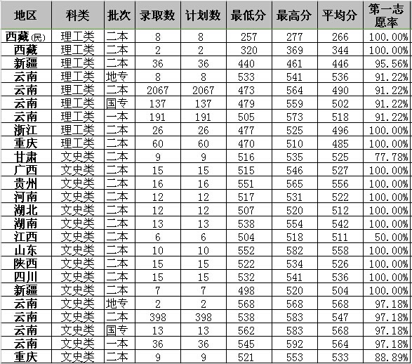 楚雄師范學(xué)院近三年省內(nèi)分專