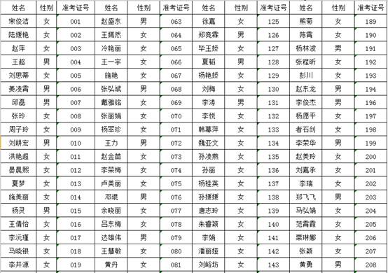 請名單上人員攜帶身份證,于6月19日到青云街道辦事處為民服務(wù)中心(一樓),憑身份證證號領(lǐng)取準考證??荚嚂r間調(diào)整為6月28日(因端午節(jié)放假調(diào)整),相關(guān)信息見準考證,如需咨詢請撥打63825563、63801830??荚嚾藛T名單見下表: