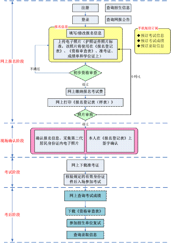 2015年云南省在職人員攻讀碩士專業(yè)學(xué)位全國聯(lián)考網(wǎng)上報(bào)名和現(xiàn)場(chǎng)確認(rèn)流程圖