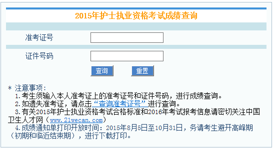 中國衛(wèi)生人才網(wǎng)(www.21wecan.com)是唯一能夠查詢并獲取2015年全國護(hù)士執(zhí)業(yè)資格考試成績信息的正式途徑,通過其他網(wǎng)站、郵件、聊天工具、手機(jī)短信、電話等方式散布的“考試未過,可內(nèi)部操作”、“內(nèi)部加分”、“包過”等聲稱可以修改考試成績的消息全部為詐騙信息,望廣大考生警惕上當(dāng)受騙!如遇到上述情形,請及時(shí)向公安機(jī)關(guān)舉報(bào)。