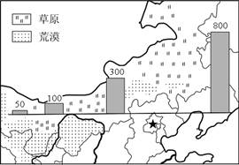 圖2表示我國(guó)局部地區(qū)及四地年降水量(單位:毫米)。讀圖2,完成17~18題。