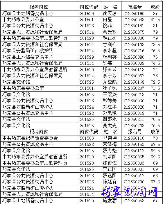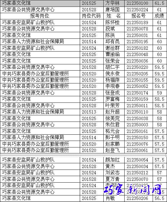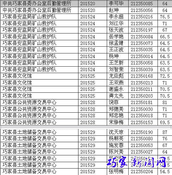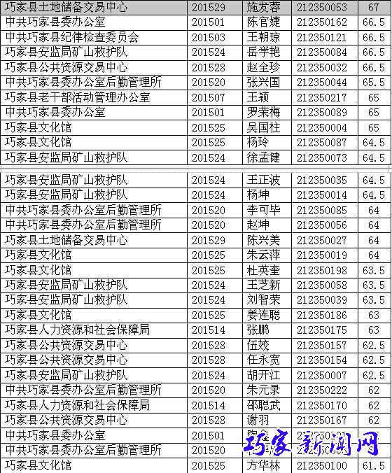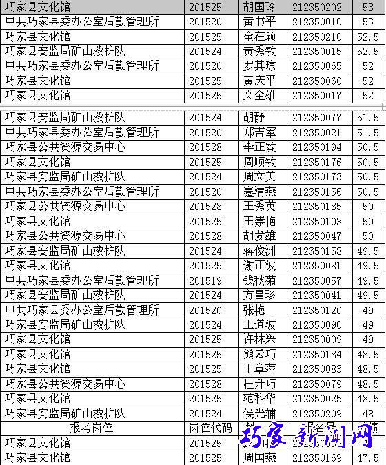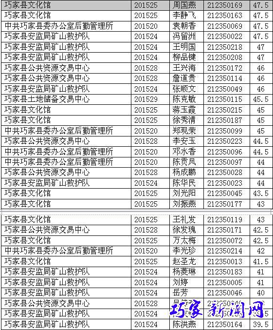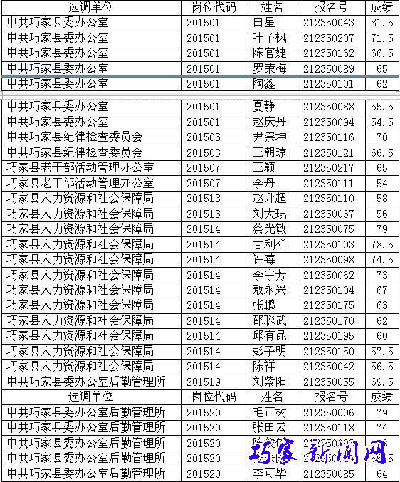 經(jīng)巧家縣縣直單位公開選調(diào)工作領(lǐng)導(dǎo)組研究決定,本次公開選調(diào)筆試最低合格分?jǐn)?shù)線確定為50分,即參加面試的人員筆試成績須達(dá)到最低控制分?jǐn)?shù)線50分及以上方可進(jìn)入面試。進(jìn)入面試名單如下: