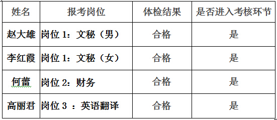 選調(diào)工作人員體檢結(jié)果及考核事項(xiàng)公告