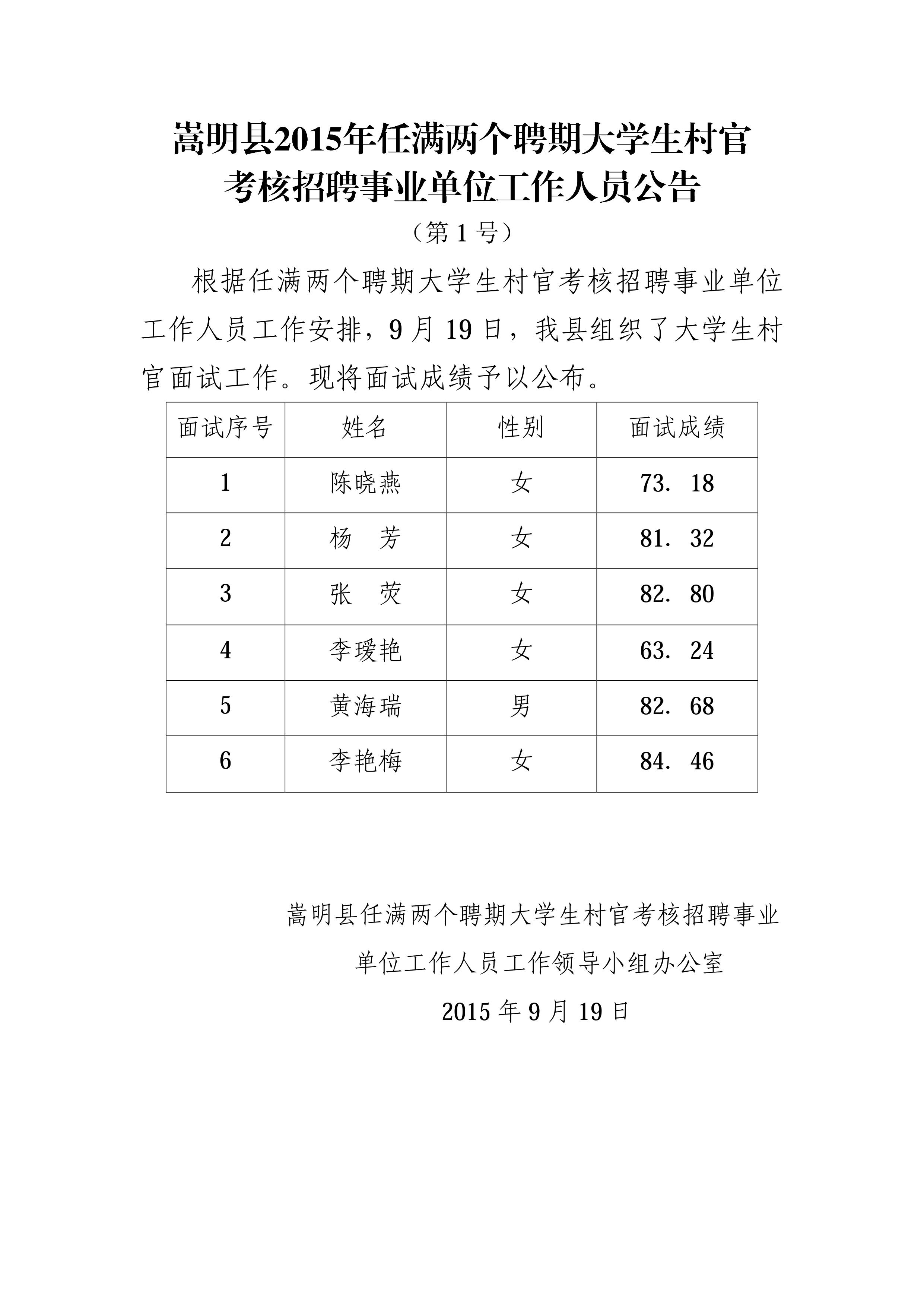 嵩明縣2015年任滿兩個(gè)聘期村官招聘事業(yè)單位人員公告