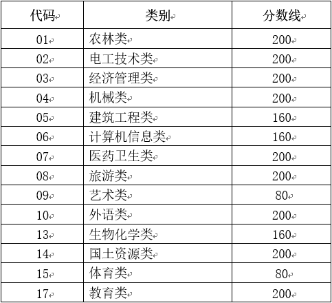 本次高職專(zhuān)科補(bǔ)錄征集志愿,各科類(lèi)成績(jī)要求如下: