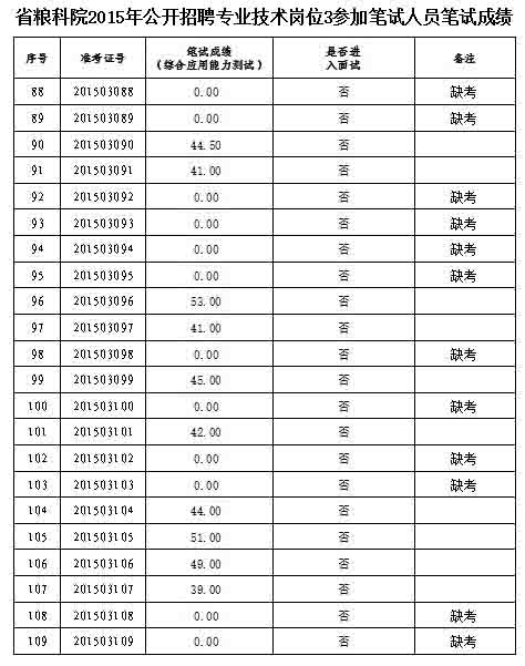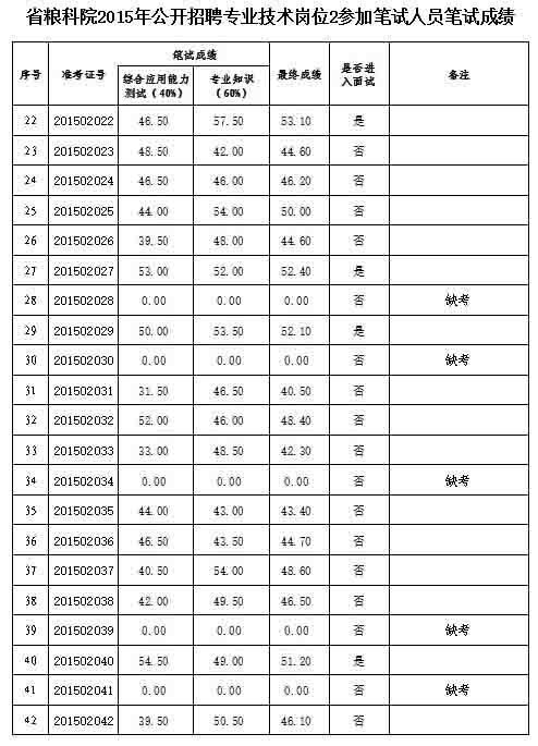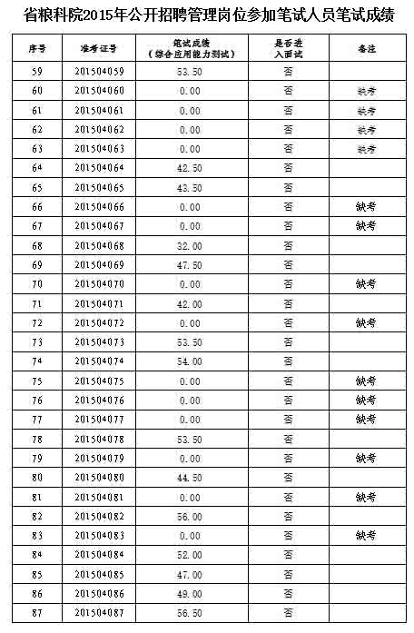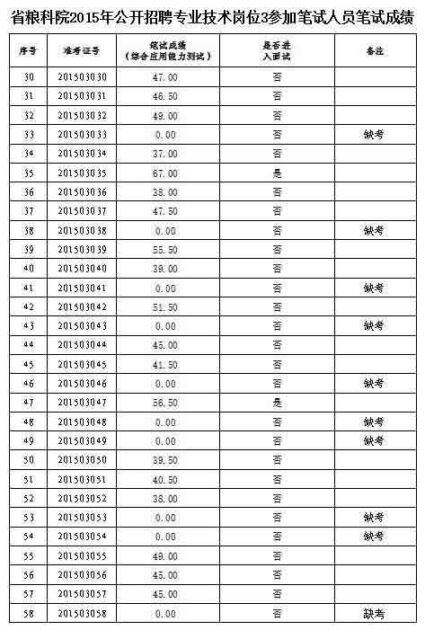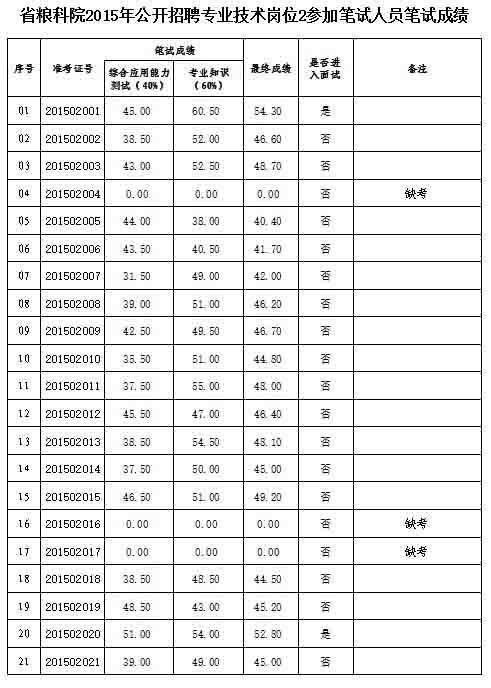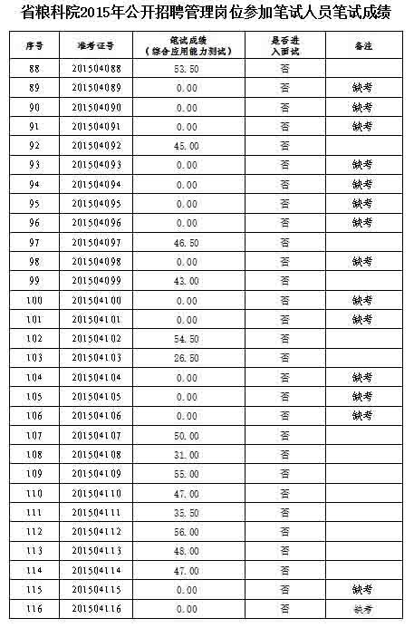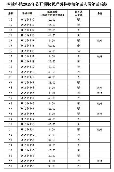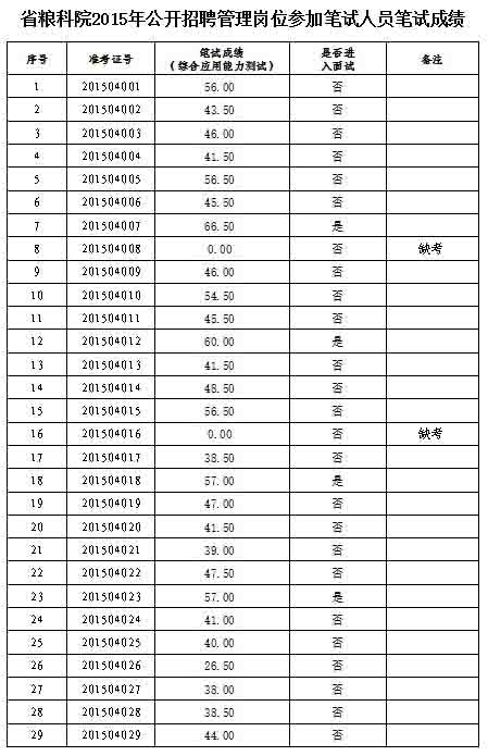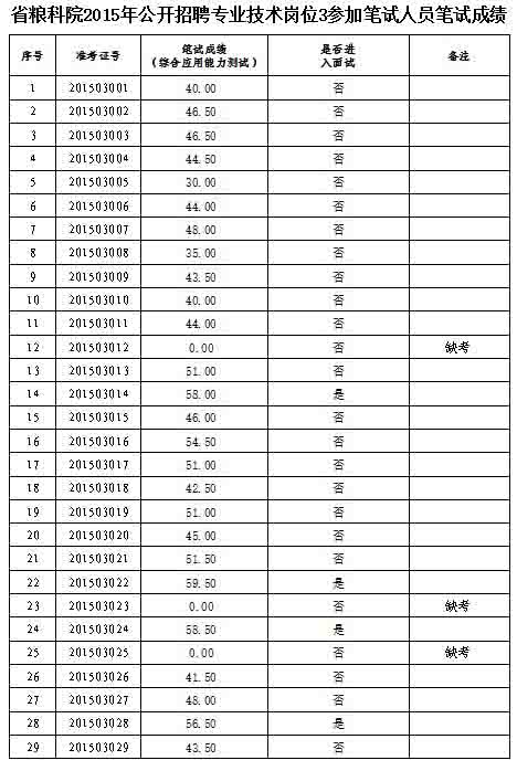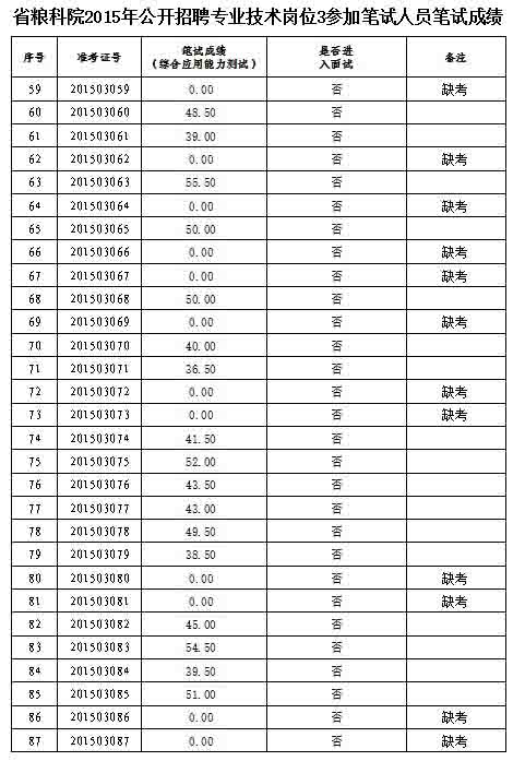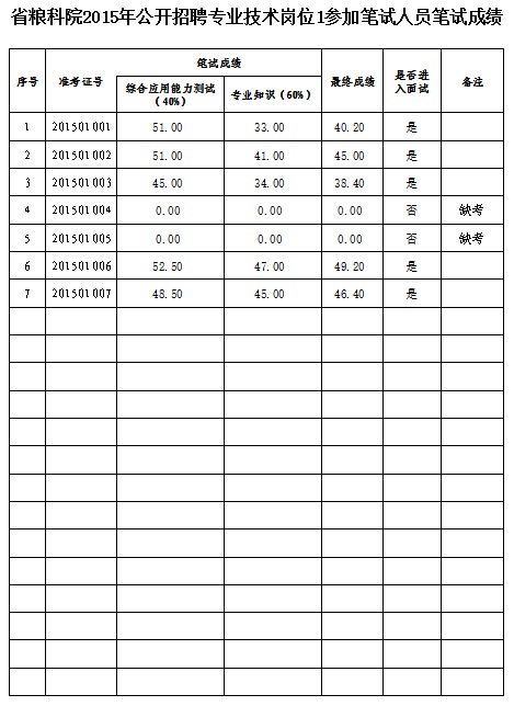 云南省糧油科學(xué)研究院2015年公開招聘筆試成績公示