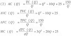 4.(1)可變成本部分:TVC(Q)=Q3-10Q2+25Q;不變成本部分:TFC(Q)=150