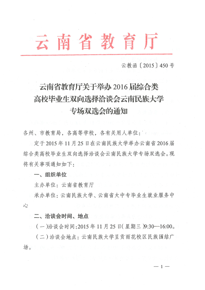 云南省教育廳關(guān)于舉辦2016屆綜合類高校畢業(yè)生