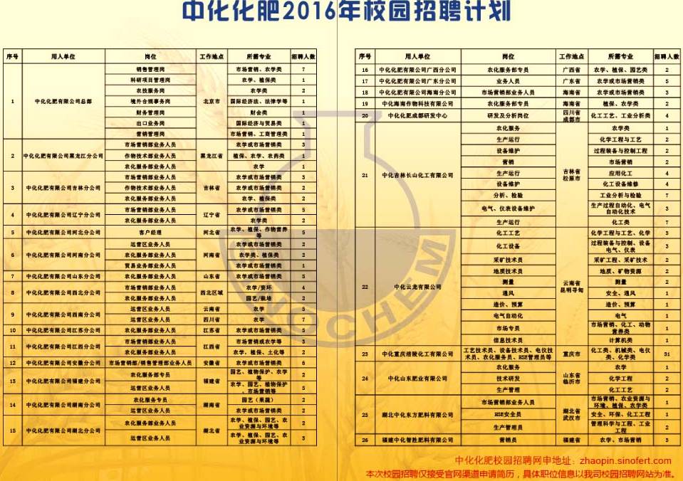 感謝你關(guān)注中化化肥2016年校園招聘,期待你的加盟!