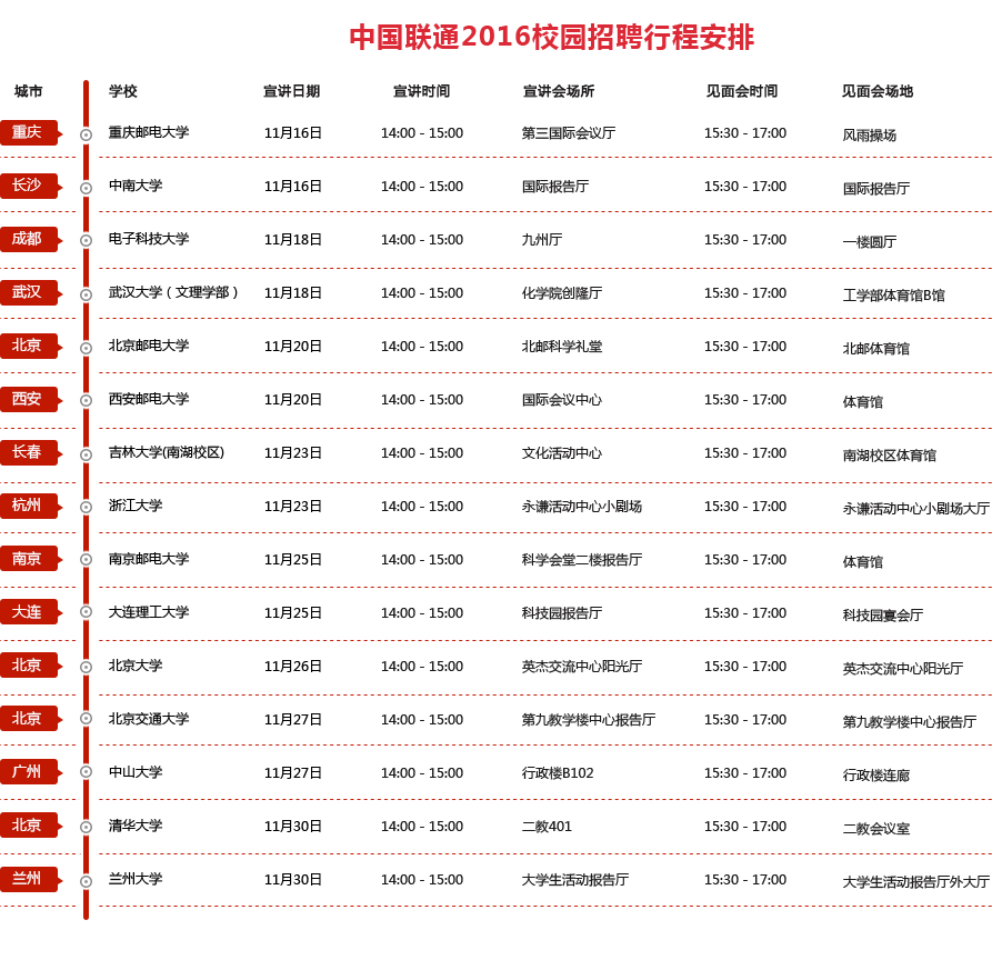 中國聯(lián)通集團所屬子分公司根據(jù)篩選及筆面試成績,確定錄用名單,并通知學(xué)生簽署三方協(xié)議。各單位具體通知簽署協(xié)議時間,將根據(jù)校園招聘進度情況確定。
