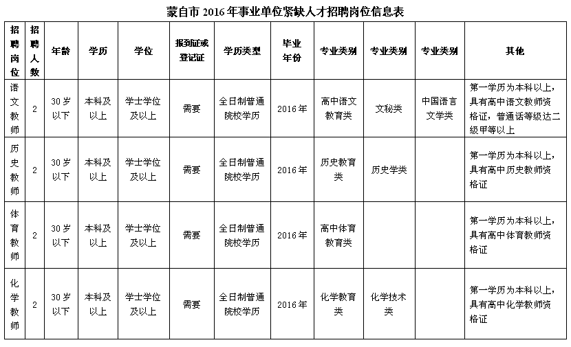 紅河州蒙自一中2016年引進(jìn)緊缺人才招聘的通知
