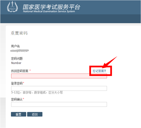 一、登錄國家醫(yī)學(xué)考試網(wǎng)(www.nmec.org.cn),點擊“成績查詢”,在國家醫(yī)學(xué)考試服務(wù)平臺登錄界面,點擊“忘記密碼”鏈接,正確填寫密碼答案后,可重置密碼。