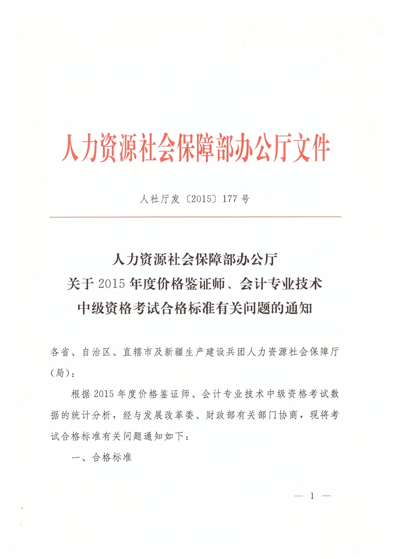 中級(jí)資格考試合格標(biāo)準(zhǔn)有關(guān)問題的通知