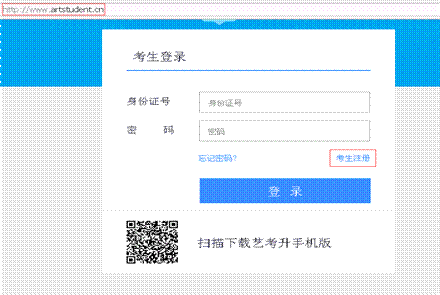 報(bào)名系統(tǒng)網(wǎng)址為http://www.artstudent.cn。對(duì)于初次使用系統(tǒng)的考生,需進(jìn)行“考生注冊(cè)”。如下圖所示: