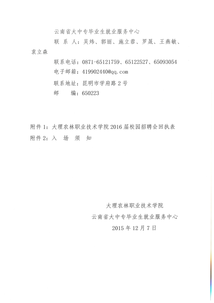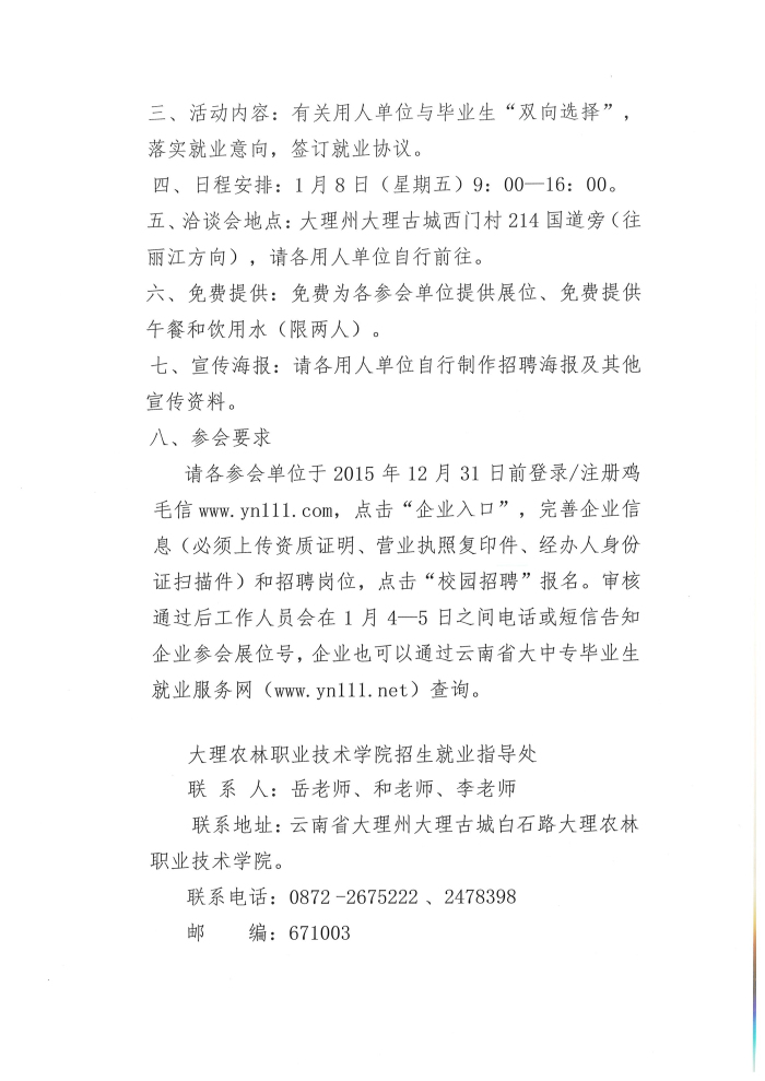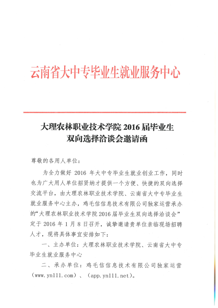 大理農(nóng)林職業(yè)技術(shù)學(xué)院2016屆畢業(yè)生雙向選擇洽談會(huì)邀請函