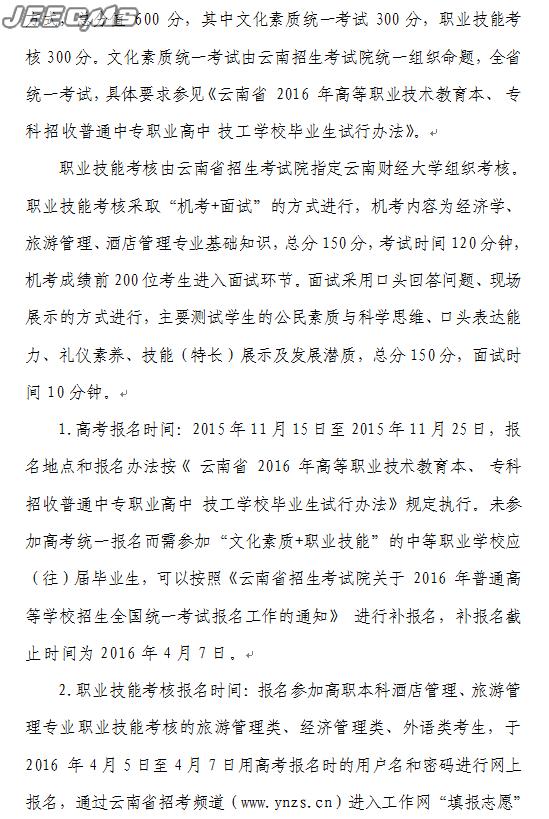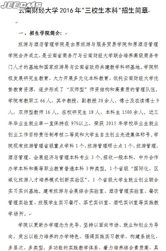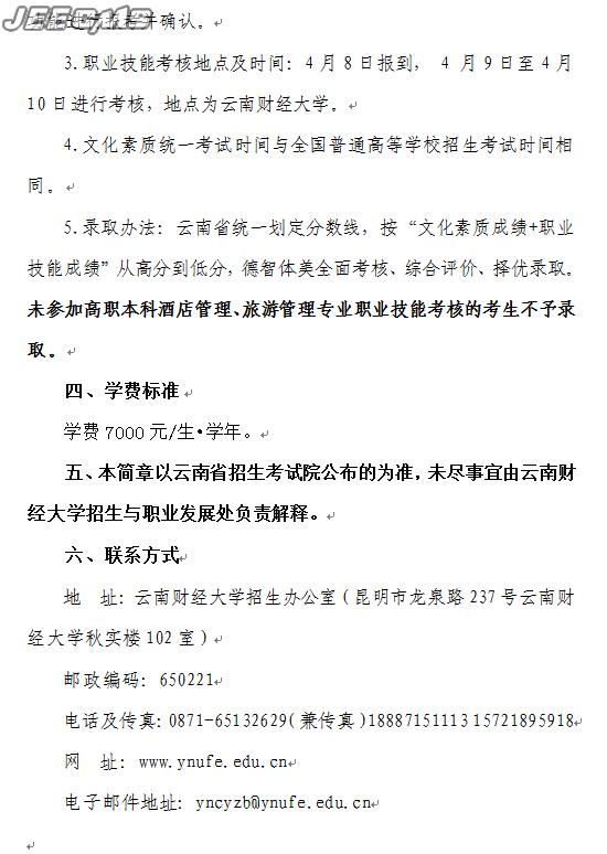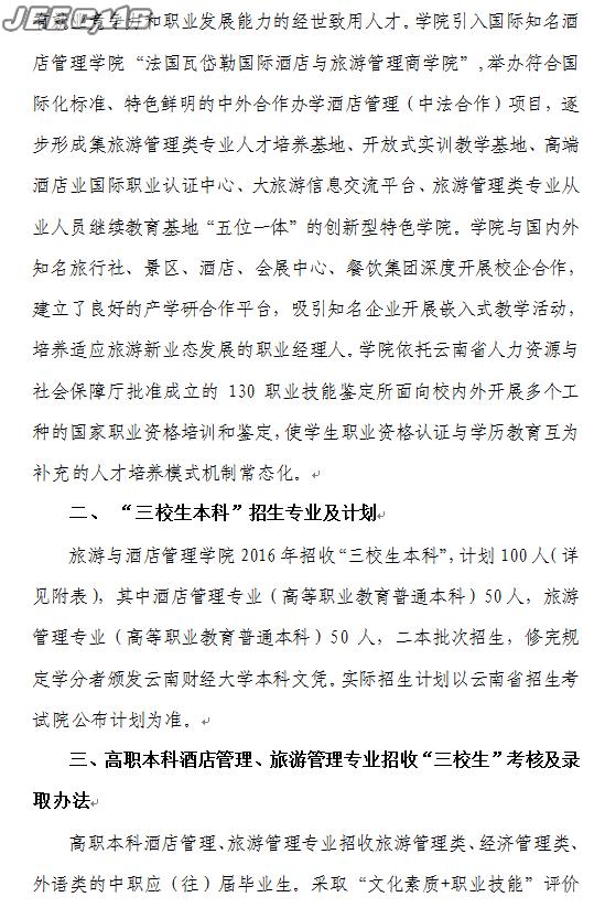 云南財(cái)經(jīng)大學(xué)旅游與酒店學(xué)院2016年三校生招生簡(jiǎn)章