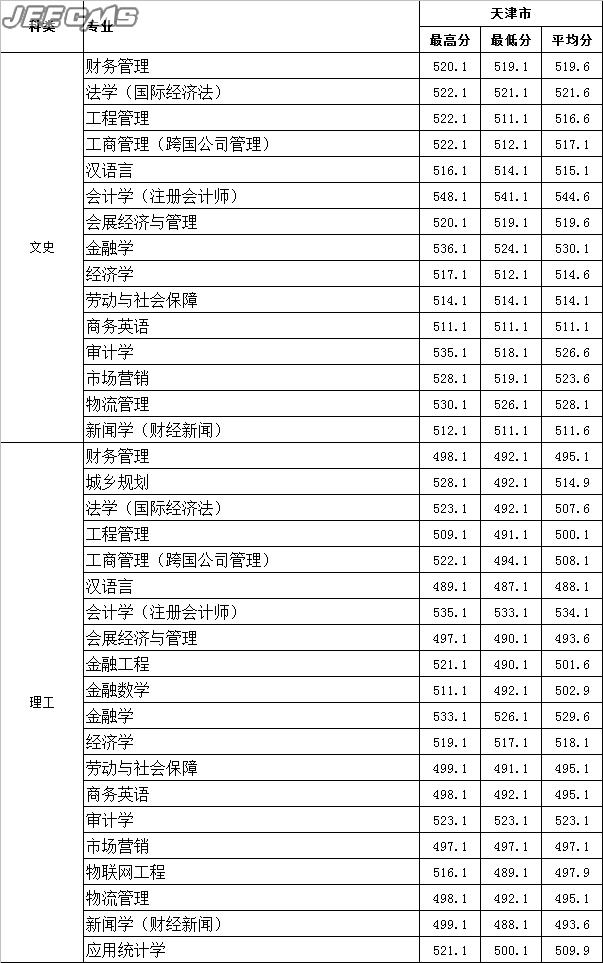 云南財經(jīng)大學(xué)2015年天津市錄取情況一覽表