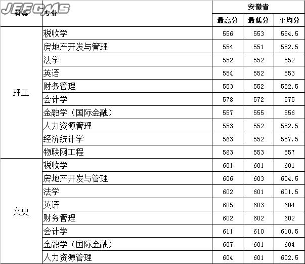 云南財經(jīng)大學2015年安徽省錄取情況一覽表