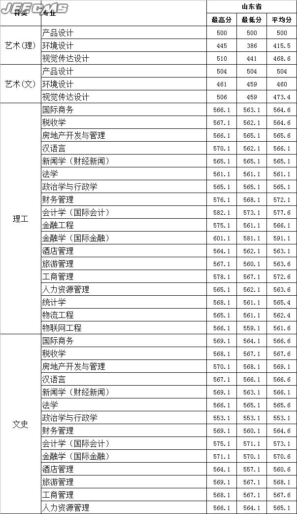 云南財經(jīng)大學(xué)2015年山東省錄取情況一覽表
