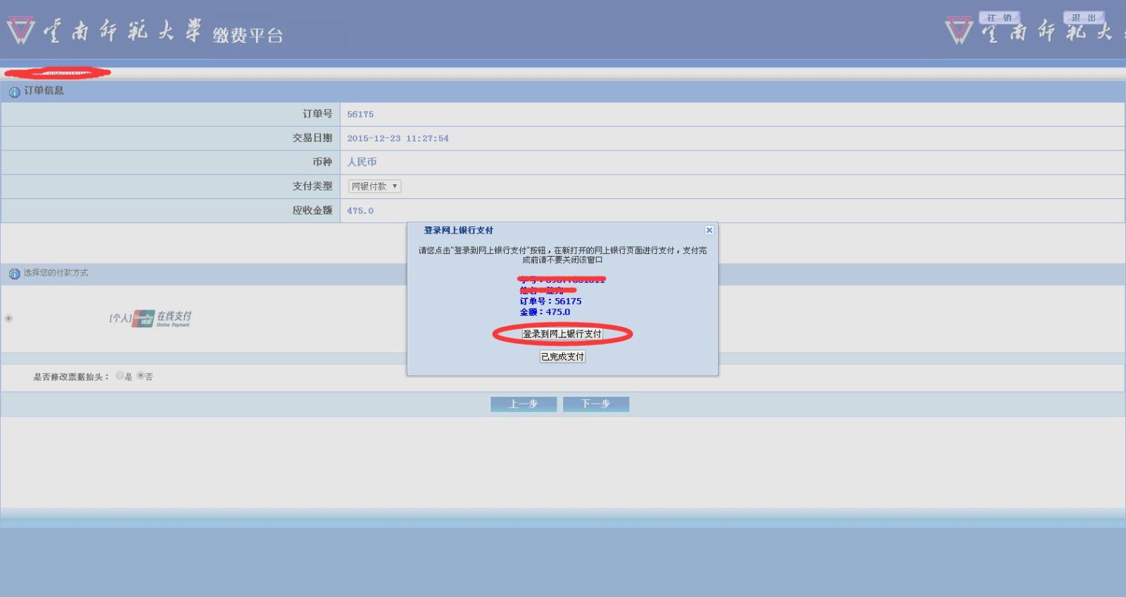 3.登錄網(wǎng)上銀行支付按照銀聯(lián)提示進(jìn)行繳費(fèi)。