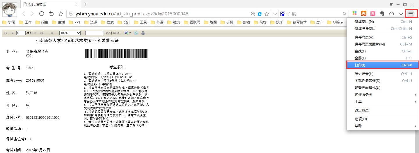 五、打印準(zhǔn)考證