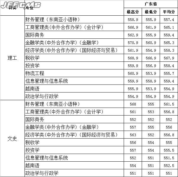 云南財經(jīng)大學(xué)2015年廣東省錄取情況一覽表