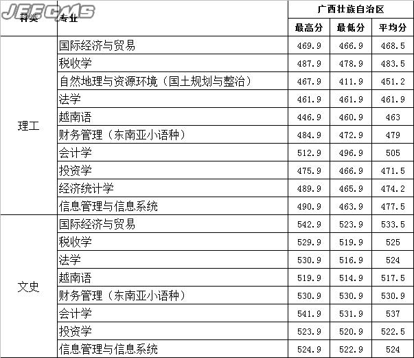云南財(cái)經(jīng)大學(xué)2015年廣西壯族自治區(qū)錄取情況一覽表