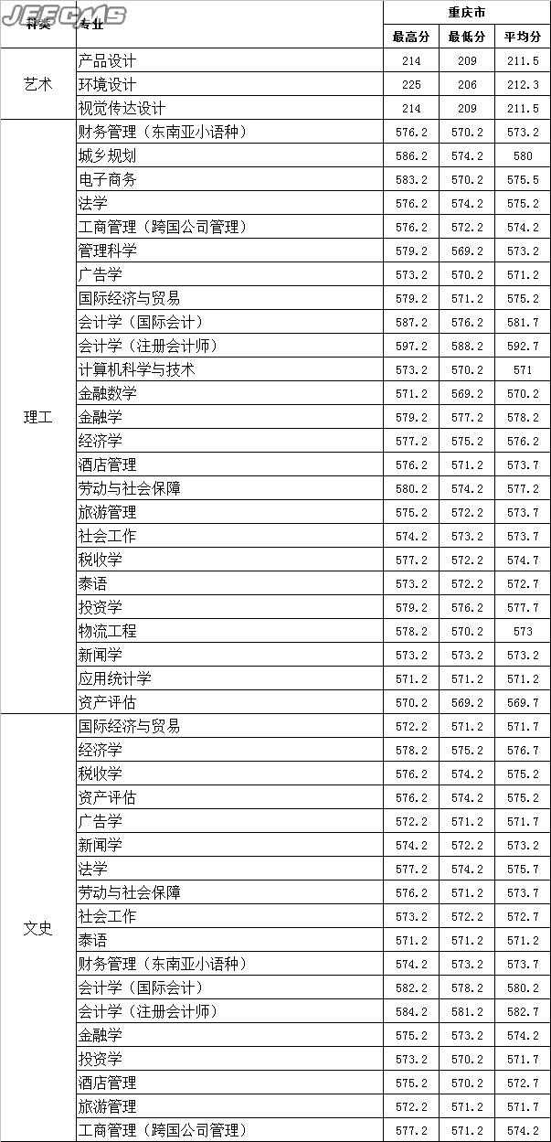 云南財經(jīng)大學(xué)2015年重慶市錄取情況一覽表