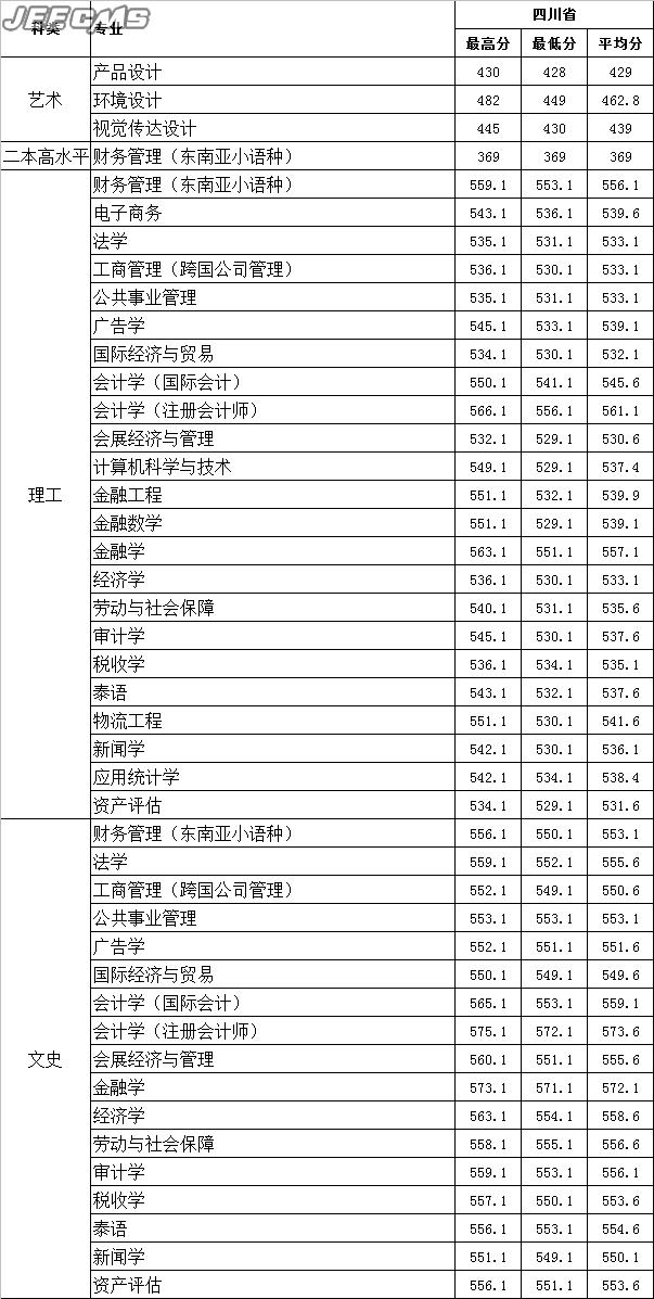 云南財經(jīng)大學2015年四川省錄取情況一覽表