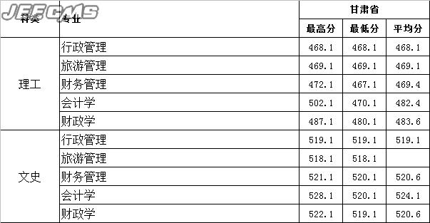 云南財(cái)經(jīng)大學(xué)2015年甘肅省錄取情況一覽表