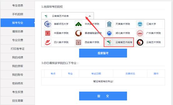 2.非統(tǒng)考(云南藝術(shù)學(xué)院??迹┻x擇“云南藝術(shù)學(xué)院”。