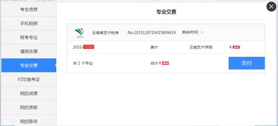 本說明所列舉圖片顯示的數(shù)據(jù)(如考生信息、考試時(shí)間、收費(fèi)標(biāo)準(zhǔn)等)均為測(cè)試之用,準(zhǔn)確信息以云南省招生考試院相關(guān)文件規(guī)定、云南藝術(shù)學(xué)院2016年云南省招生簡(jiǎn)章及網(wǎng)上公布的信息為準(zhǔn)。