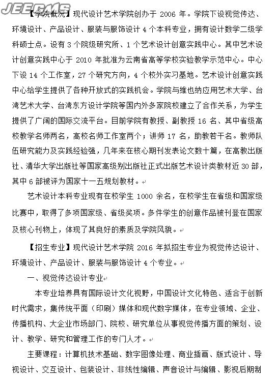 云南財經大學2016年藝術類招生簡章