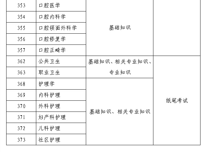 2016年衛(wèi)生專業(yè)技術(shù)資格考試紙筆考試專業(yè)目錄