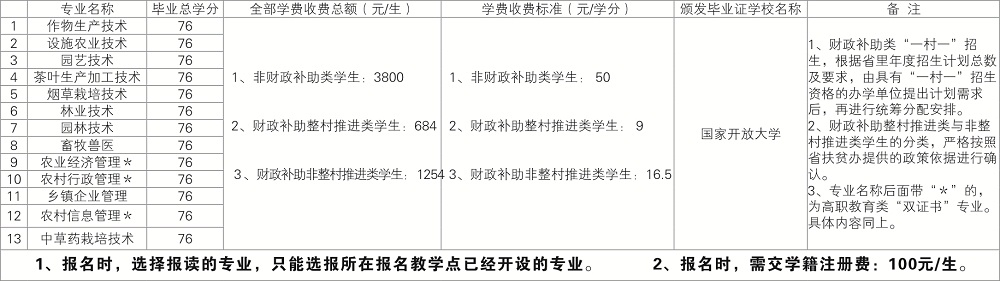 “一村一名大學(xué)生計(jì)劃”專科專業(yè)13個☆招生對象:具有高中、職高、中專、技校及以上學(xué)歷的農(nóng)村籍青年。