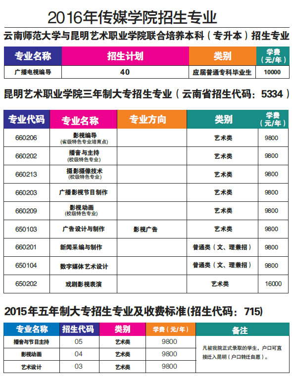 昆明藝術(shù)職業(yè)學(xué)院2016年五年制大專招生簡章