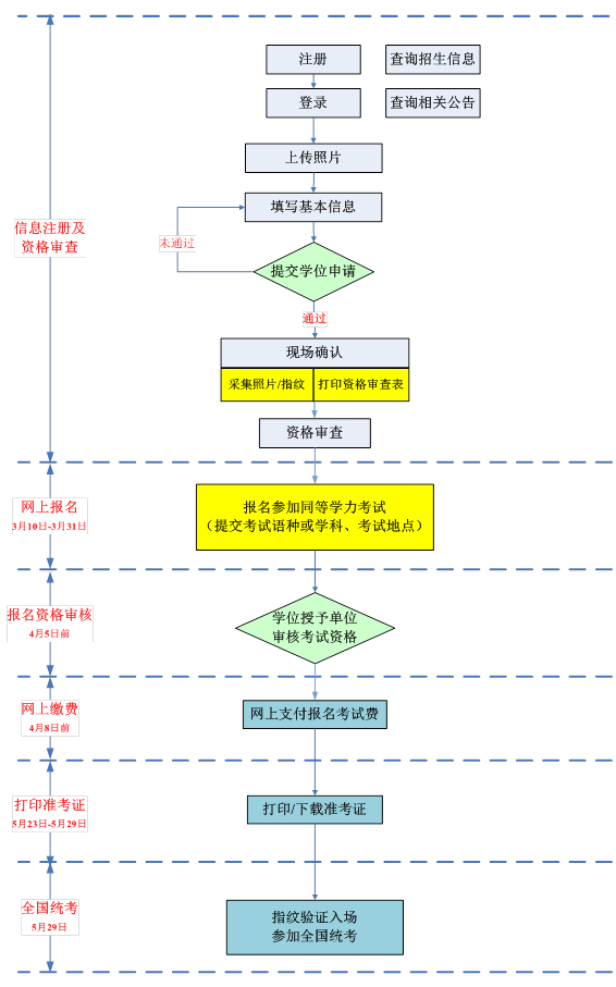 ②3月10日前,學(xué)位授予單位將所有擬參加2016年同等學(xué)力全國(guó)統(tǒng)考的申請(qǐng)人個(gè)人特征信息(指紋、電子照片等)采集完畢。